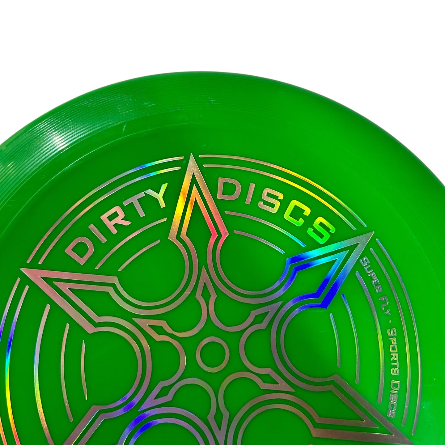 The Indy Dirty Discs ultimate flying disc is a high-quality disc suitable for both regular park play and competitive ultimate frisbee games. With a competition weight of 175g, which is the regulating weight for ultimate disc games, it allows for longer, more precise throws and better side wind performance, making it a favourite among ultimate players. The disc has a thicker rim, giving it a longer and more stable flight, making it ideal for trick throws and catching. The disc is available in bright colours, including green. The dimensions of the disc are 28 cm x 28 cm x 3 cm, with a weight of 175g.