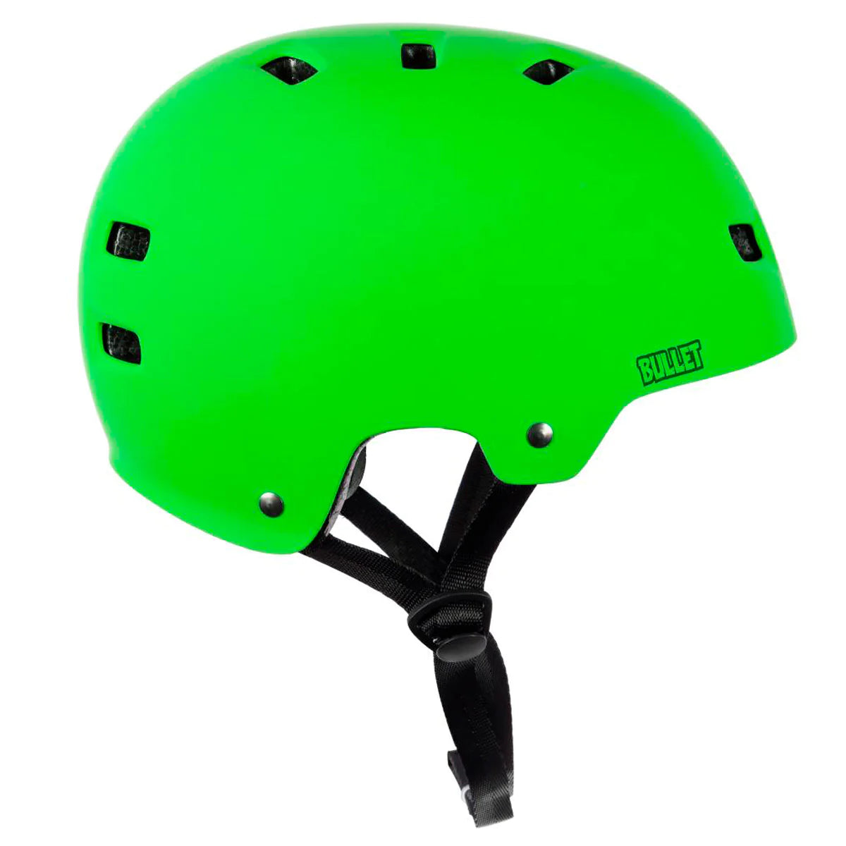 New for 2019, One size fits all Bullet Youth Helmets. Bullet takes pride in producing safety gear that you can trust. Shell: High density ABS injection moulded Liner: EPS polystyrene foam Ventilation: 12 vent cooling system Inner padding: 3 piece removable and washable Pads included 9mm, 6mm & 3mm Safety certificate: CE EN 1078 Sizing : 49-54cm - one size fits all