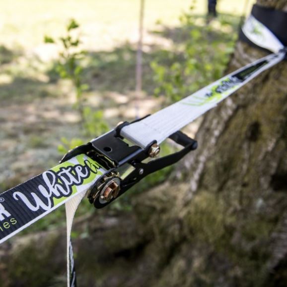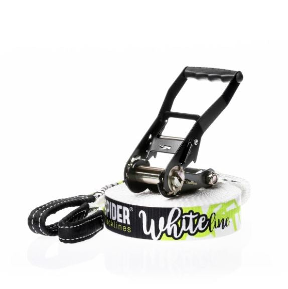 The WHITE line is THE slackline to start becoming more familiar with the slackline world. The most successful Spider slackline.