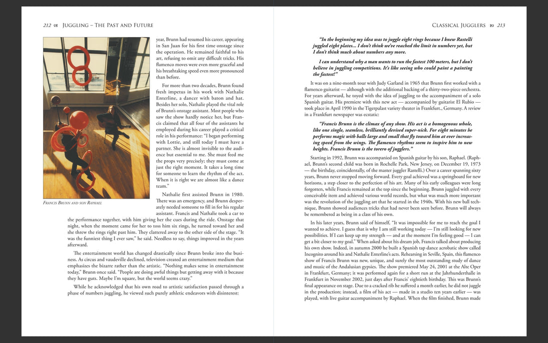 What makes this book truly special for jugglers is that Ziethen didn’t just collect facts; he organized juggling history into clear timelines and styles. As a close personal friend of many of the greatest modern jugglers, from Anthony Gatto to Francis Brunn, he documented juggling from the inside. You can literally see how tricks, props, and styles evolved, disappeared, and then returned centuries later in new forms. It’s a powerful reminder that almost nothing in juggling appears out of nowhere.