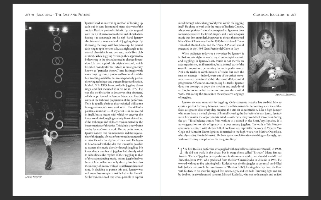 This book is the most comprehensive history of juggling ever published and once you open it, you immediately see why. Juggling – The Past and Future represents the life’s work of legendary juggling historian Karl-Heinz Ziethen. It reads like an encyclopedia, an inspiration book, and a visual archive all in one.