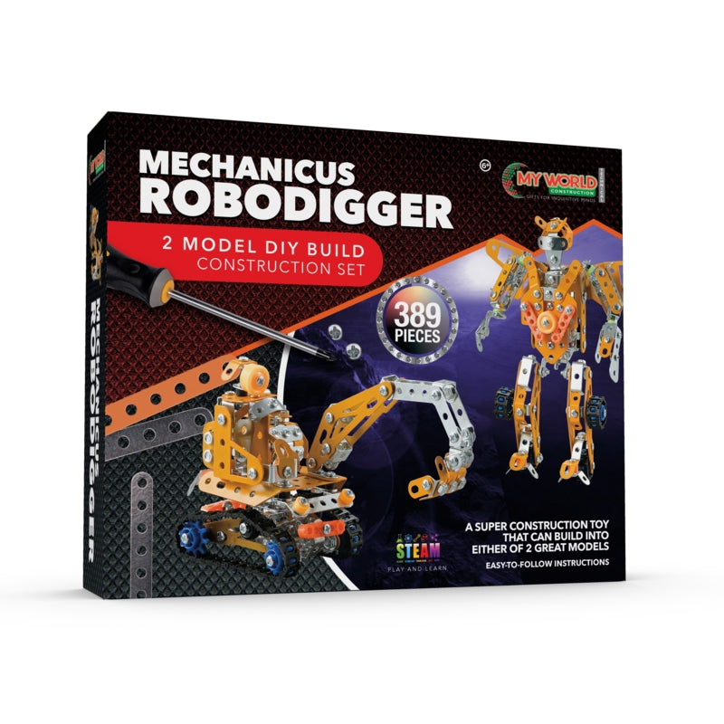 2 Model DIY Build: Construct either a Robot Toy or a Tracked Digger Toy from the same set.