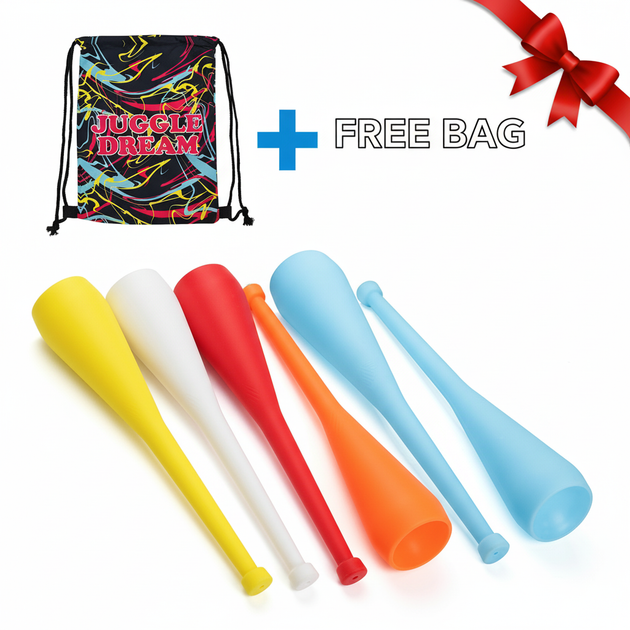 NDJuggling Bottle Club Set – 3x Juggling Clubs + 1x Juggle Dream Splash Drawstring Bag