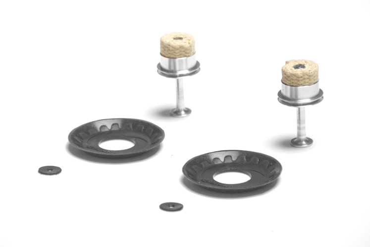 The main part of the kit is constructed from a light metal cup made from a strong aluminium alloy. It holds the kevlar and is fixed into the diabolo with a 6 mm nut inside the Cup. The kevlar is semi-covered by the aluminium cup so that half of the volume works as a fuel-container. The silicone disc protects the diabolo body against flame-damage.