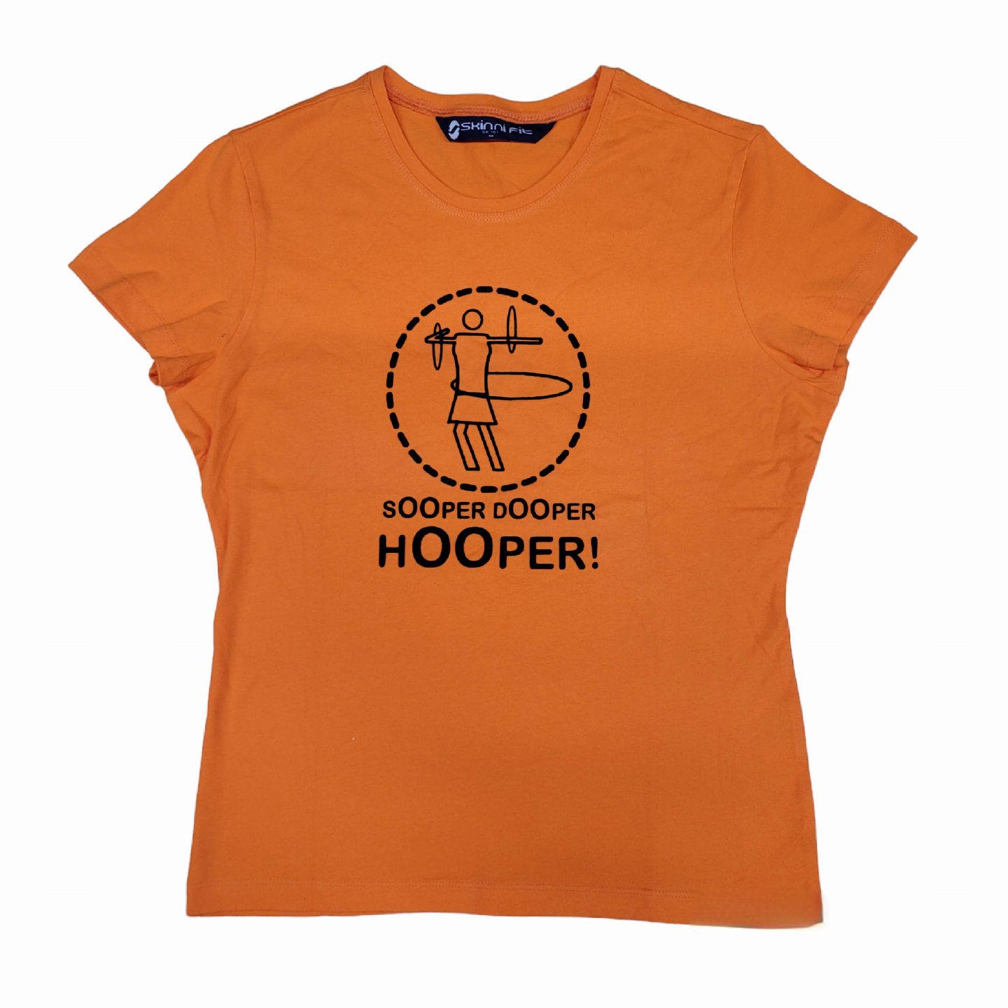 Hula Hoop Graphic: The front of the t-shirt features a bold and colorful graphic of a hula hoop in action, capturing the essence of joy and movement.
