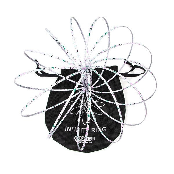 The Infinity Ring by Juggle Dream is a versatile flow prop that can be used on its own or in combination with other props such as staffs, contact balls, or collapsible hoops for unique and dynamic performances. The Infinity Ring creates a mesmerizing illusion as it rolls from limb to limb, making it a great addition to any flow artist's repertoire. It can also be passed between friends, adding an element of playfulness and social interaction to the performance. The Infinity Ring is designed to be lightweight and easy to handle, allowing for a wide range of movements and tricks. Overall, it is a fun and innovative prop that offers endless possibilities for creative expression
