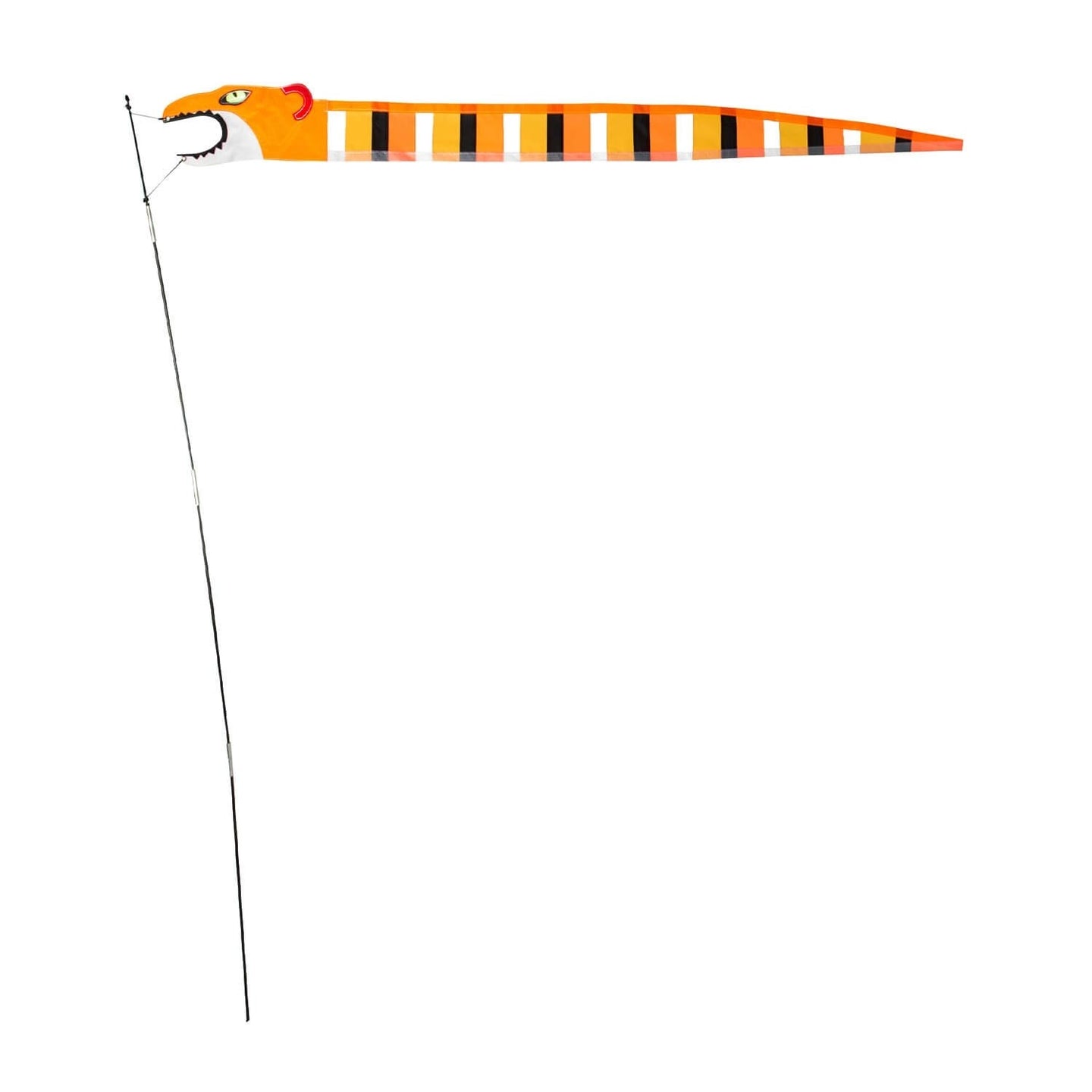 With the tiger flapping animal Timmy Tiger you get a beastly colorful wind chime for your garden or balcony. The airy tiger is also perfect as a marker on the beach so that you can find your place more quickly. In addition to the tiger wind chime, the scope of delivery includes a 150 cm long fiberglass rod and a plastic ground plug. The linkage is constructed from a pluggable fiberglass rod with aluminum sleeves and is 8 mm thick. This means that the fiberglass rod is divided into 3 sections of 50 cm each. You will also receive a rubber band, which is helpful for connecting the sticks. The robust flatterer can therefore be easily taken anywhere and is ideal as a garden decoration.