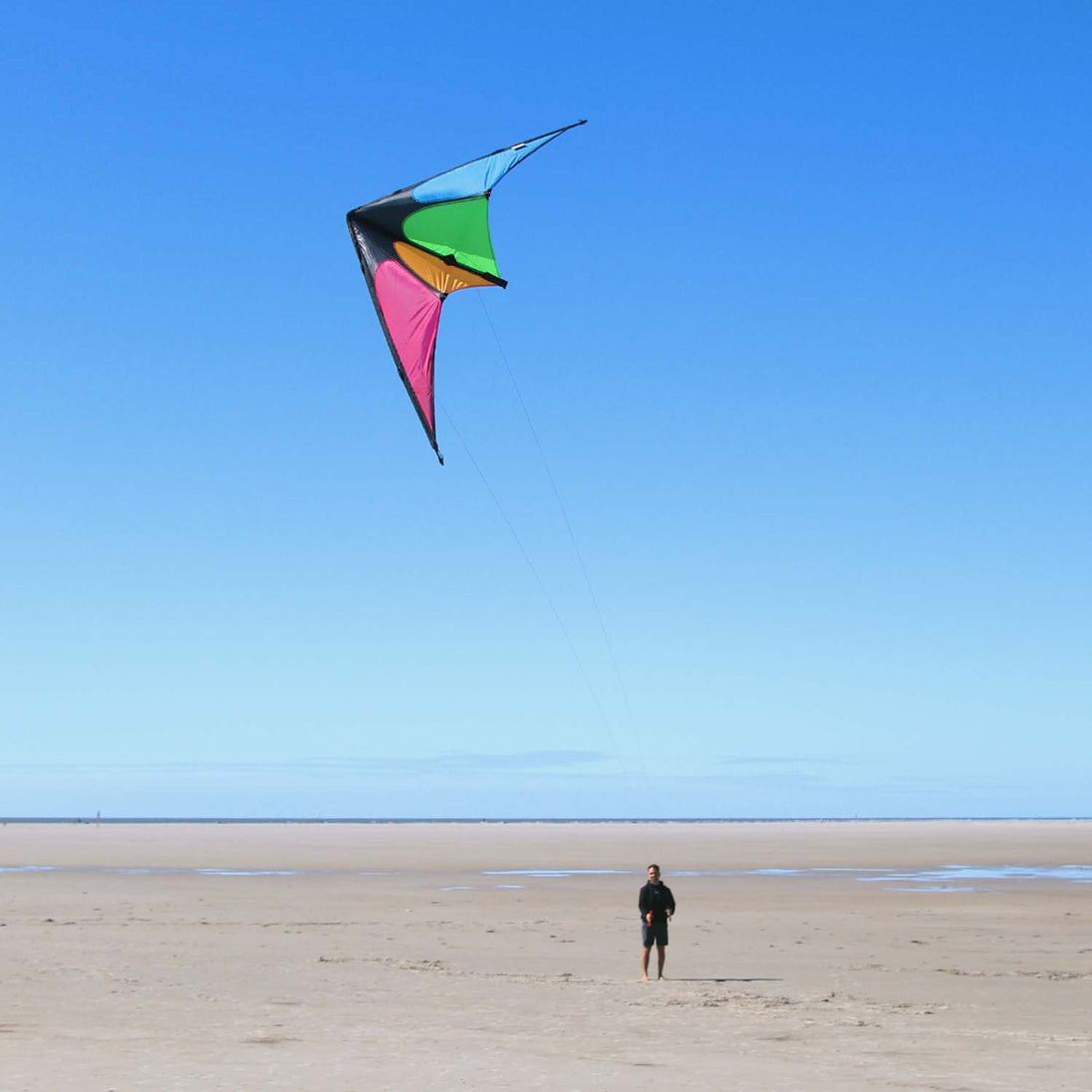 The Sprinter kite impresses not only with its flight characteristics, but also with its high-quality construction. It consists of a robust 6 mm fiberglass rod and a stable 40D nylon cloth. This combination of durable materials guarantees excellent performance in every flight situation. Whether strong winds or fast manoeuvres - the Sprinter masters everything with flying colours.