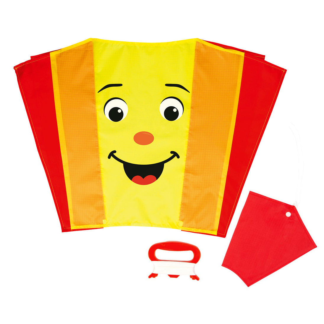 Introducing the Sled Smile - a whimsical and vibrant kite that brings joy to the sky and smiles to every child's face. With its cheerful design and easy-to-use features, this bright kite is perfect for young pilots aged 3 and over.