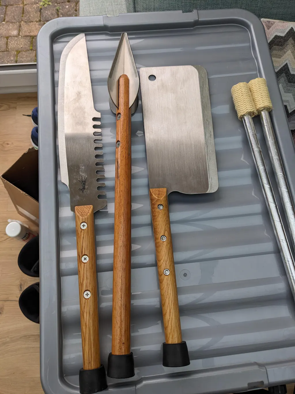 The metal edges are unfinished so they are a bit sharp. Might be worth spending a few hours with some sand paper or a file to round the off a bit.