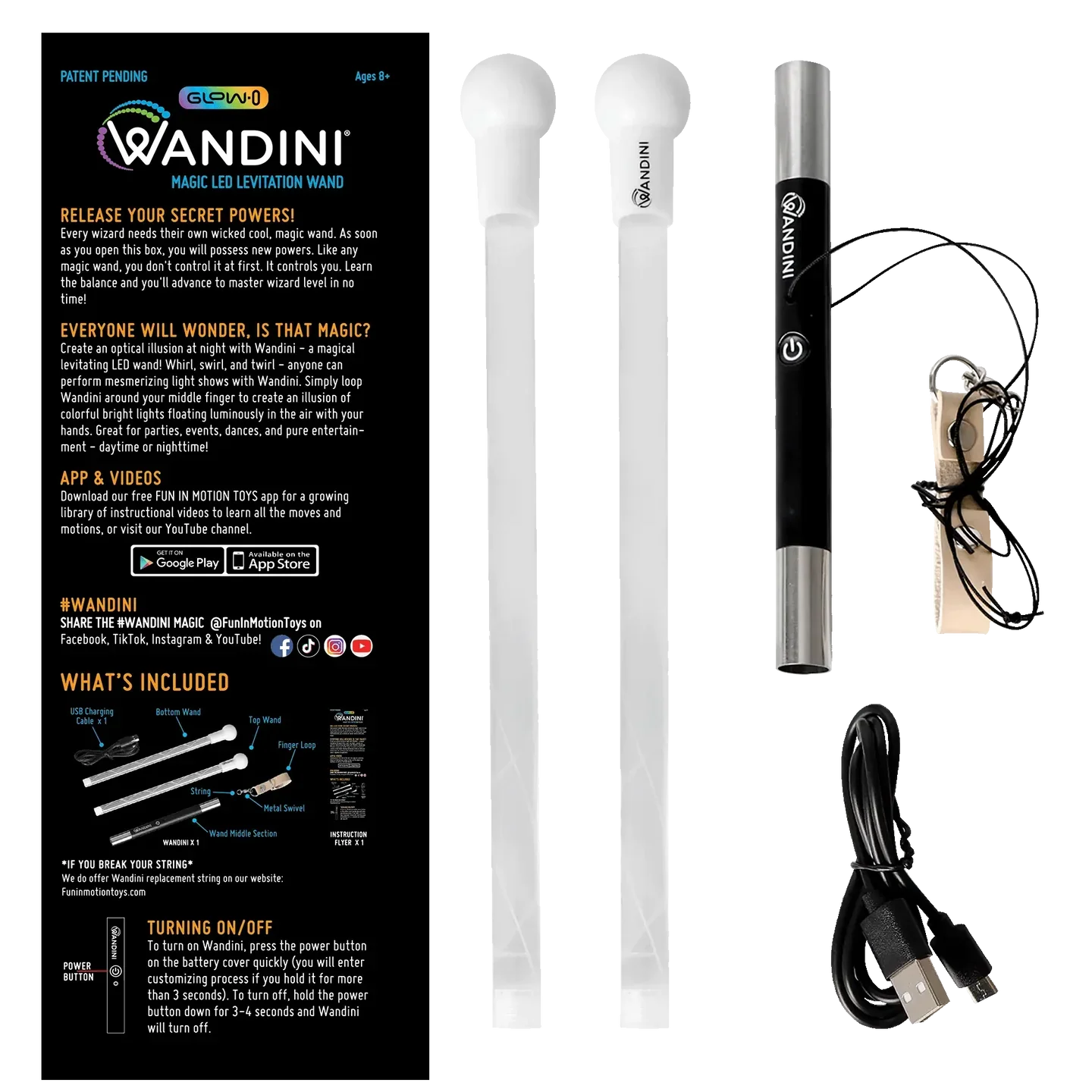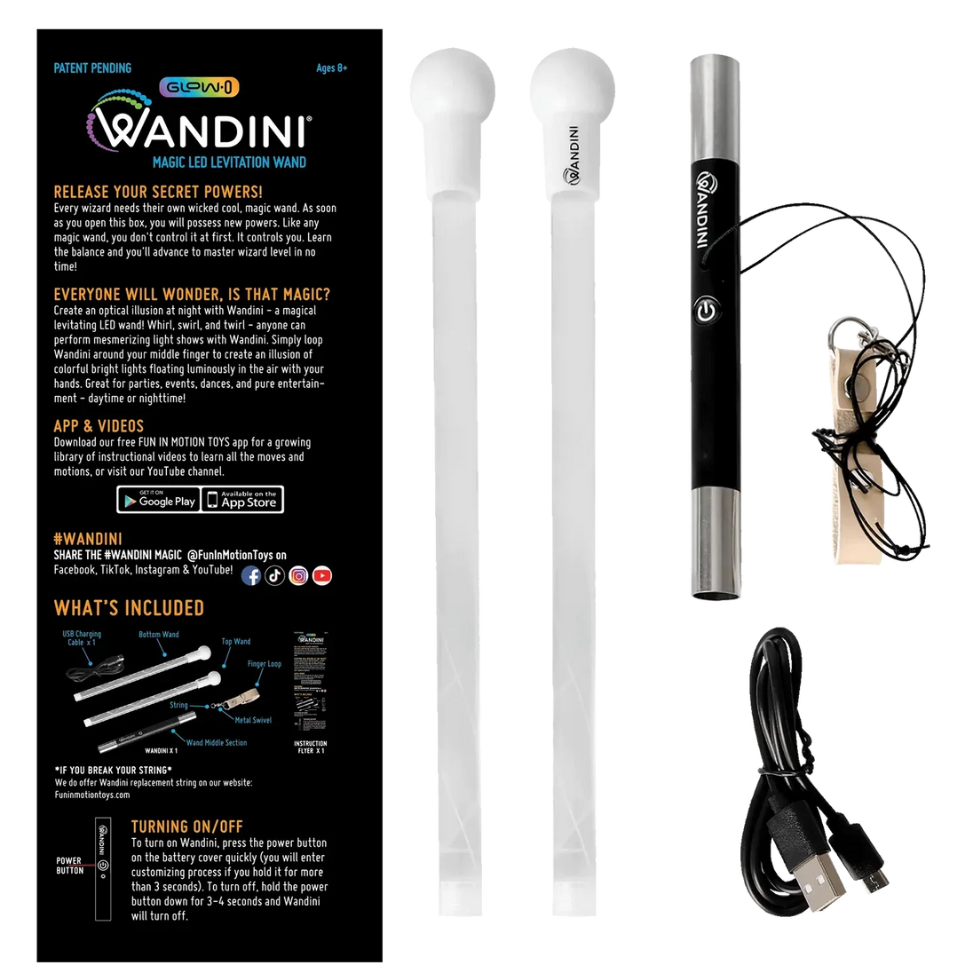 An awe-inspiring, levitating LED wand! Whirl, swirl, and twirl - anyone can perform dazzling and mesmerising light shows at night with Wandini Glow.0. Simply loop the strap around your middle finger to create an illusion of bright lights floating luminously in the air with your hands. Everyone will wonder, is that magic?