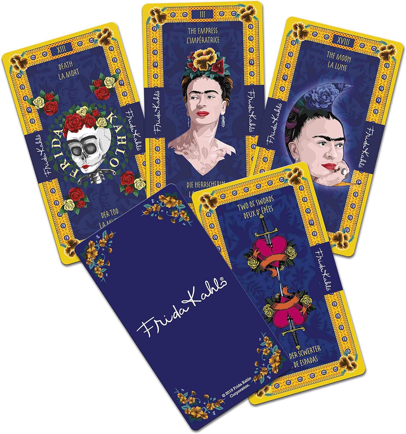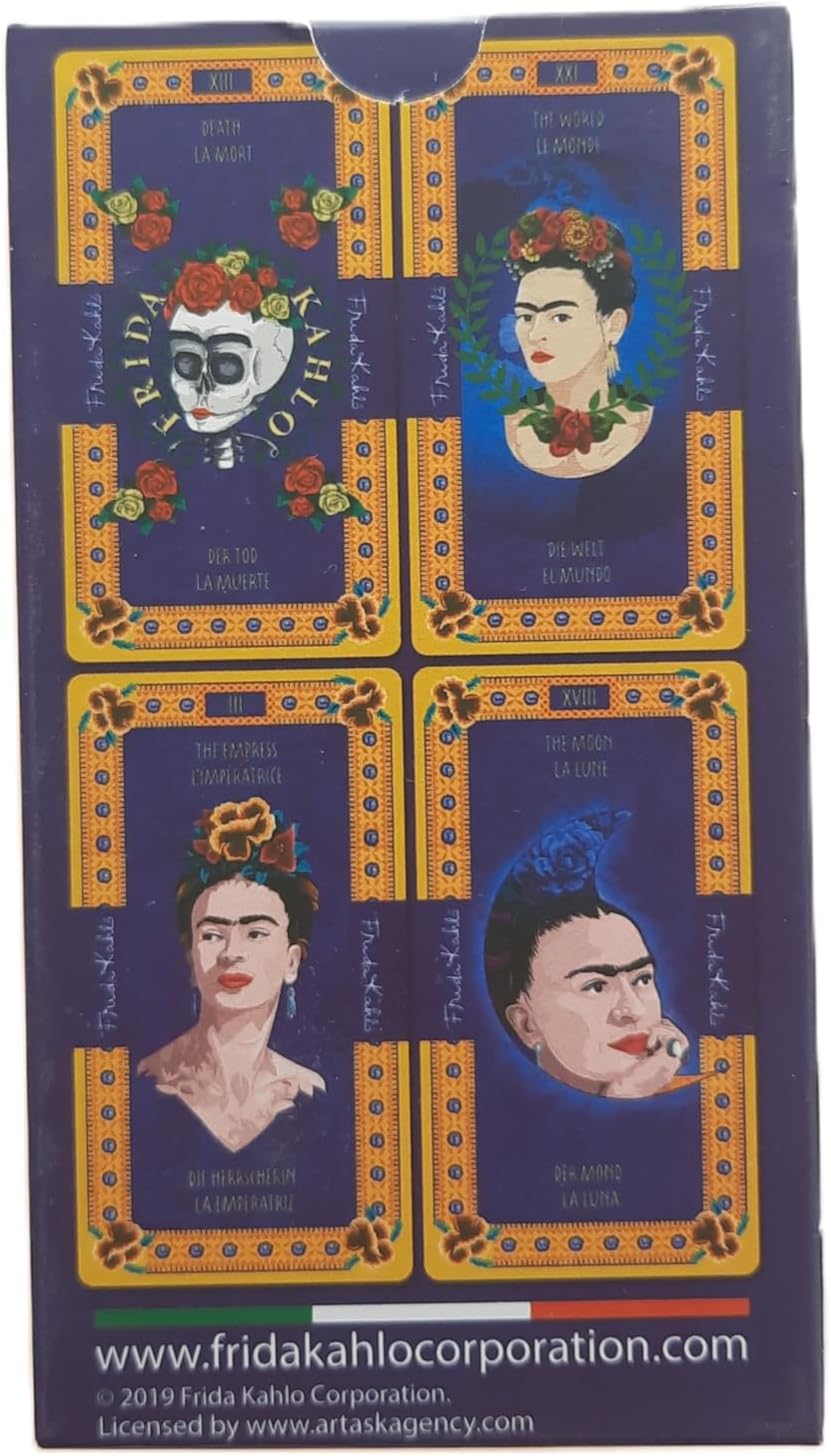 Frida Kahlo expresses diversity, and it’s this diversity that generates transcendence and impacts in society, overcoming barriers of culture and time. Also expresses revelry, love, desire, energy and passion. This tarot represents the strong woman, multifaceted, different, avant-garde and autochthonous, not only her culture but for her personality. Frida Kahlo’s tarot looks to impact the essence and wellbeing. It represents emotions and feelings common to every human being, seen in her art, life, ideology and culture.
