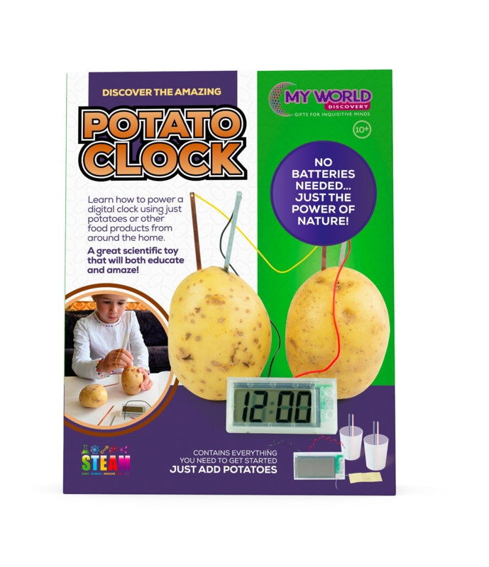 This engaging STEM experiment allows children aged 5 and up to generate electricity using only the power of nature and common household items. They can use various foods and drinks around the houseālike potatoes, tomatoes, lemons, or even a fizzy drinkāto create a natural battery and power the digital clock included in the set.