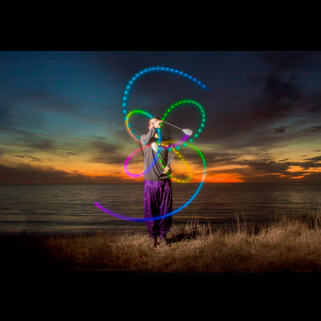 Elevate your flow practice with the PodPoi V2—offering a perfect blend of movement, light, and art. Enjoy a vibrant poi experience like never before, with more customizable modes, brighter LEDs, and the reliability to glow all night long!