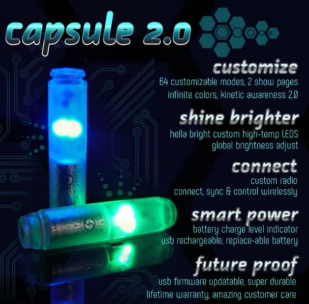 The all new capsule handle shell replaces the previous modified crystal case + knob with a complete redesign that gives you superior durability, modularity, ease-of-use and a built-in weighted knob for comfort. Perfect for gunslingers, tosses and string manipulation. Plus, no need to remove the shell to charge your light: simply line your capsule's charging port up with the slot and plug your cable in!