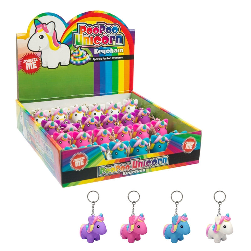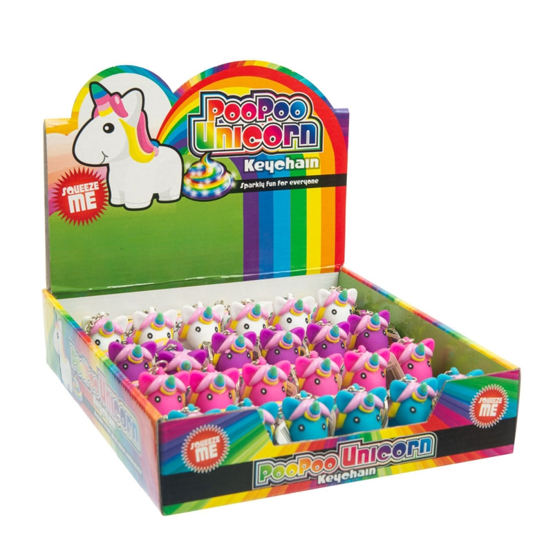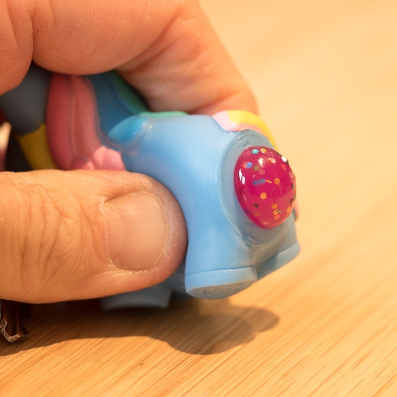 Attached to a sturdy keyring, this adorable unicorn provides instant fun and stress relief. When squeezed, out pops a glittering, sparkly "poo"—let go, and the glittery poo retracts back into the unicorn, ready for another squeeze!