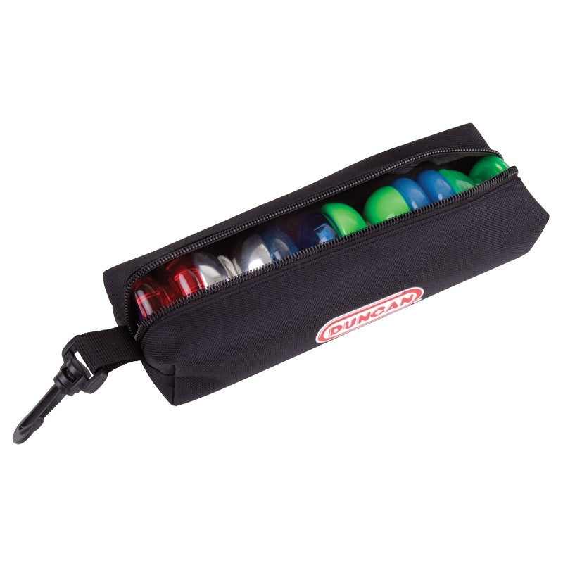 Store and carry up to 6 yo-yos in the Duncan® Yo-Yo Pouch! Each pouch comes with customizable foam that can be placed between yo-yos and can be clipped to backpacks belt loops, and more!