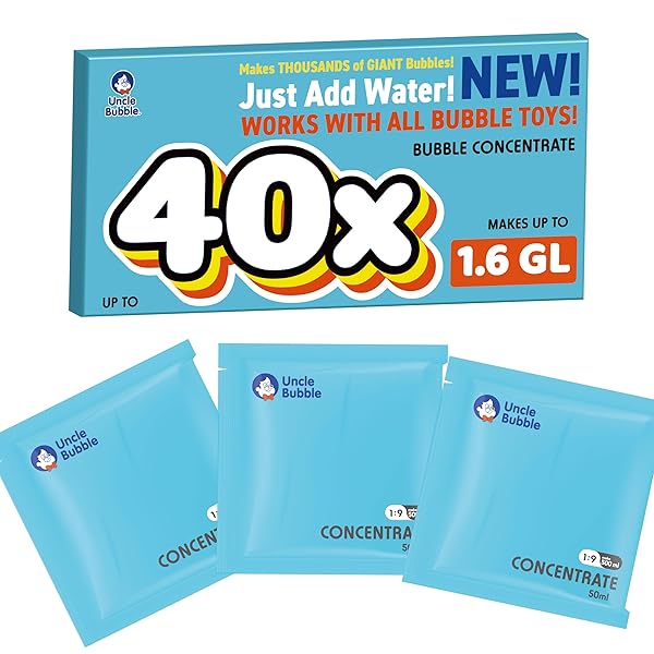 No reviewsUncle bubble refil concentrate 1:9 50ml (3 Bags) 【CONVENIENT PORTION CONTROL】- Our concentrated bubble solution comes in individual pouches, with each box containing 3 packets. This allows you to use just the right amount for your...Regular price £5.99 -