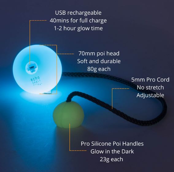 Echo Orbit : Flight - LED USB Multifunction Poi Set - Includes Pro Silicone Poi Handles