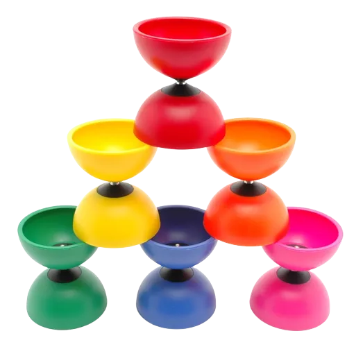 The "Millenium" diabolo is great for beginners to the fun, challenging diabolo game. Consists of two cups with their open sides pointing outwards and are connected together with an axle. Place the diabolo on the cord between both handling sticks. When you move the cord with your hands, the diabolo begins to rotate along its longitudinal axis. This rotation makes it stable – the basic requirement for tricks such as tossing the diabolo into the air and catching it on the string again.